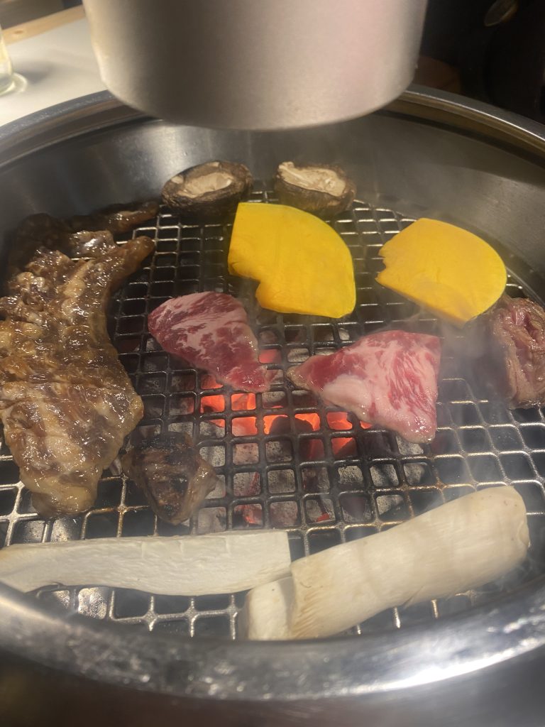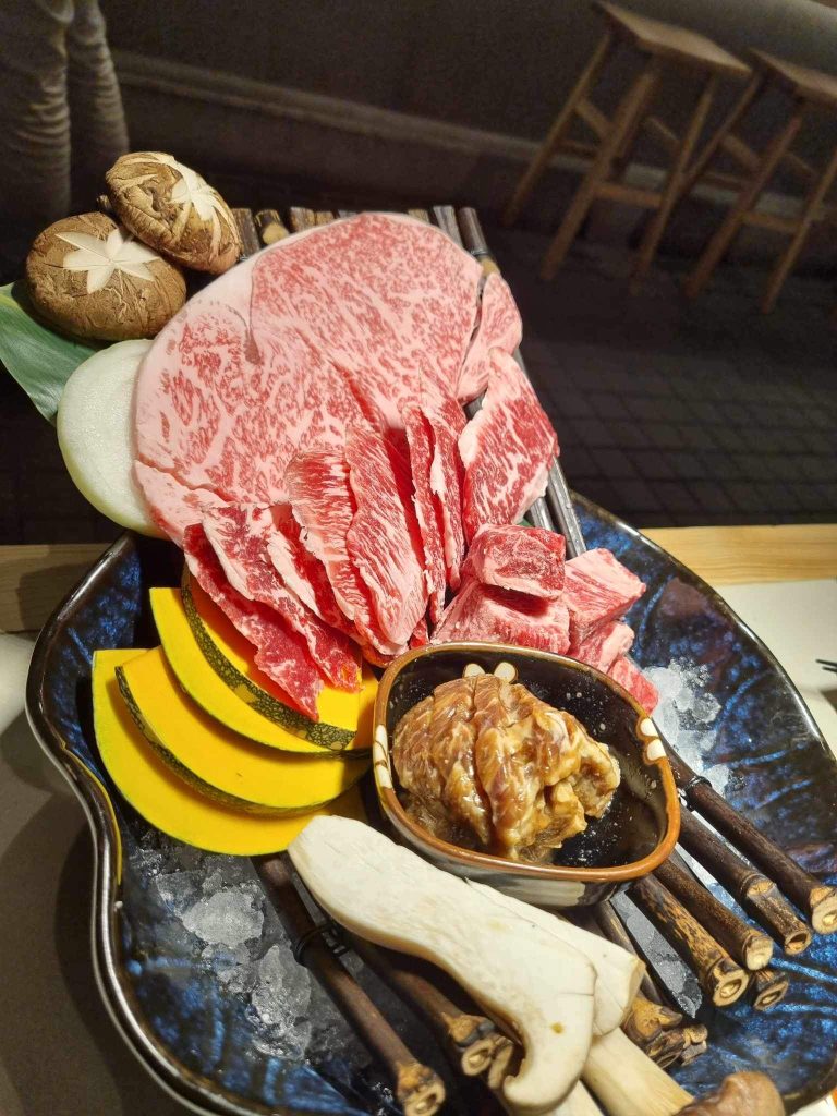 At Taki, we decided on the self-cooked BBQ and had the Taki Signature Platter. A selection of Wagyu beef from strip loin to short rib pieces. Along with an onion slice, pumpkin and mushrooms. The Wagyu strip loin was rated A5 the highest ranking of beef. I have to say that I eat my fair share of wagyu scotch fillet, but this piece was amazing. it was buttery soft and left a layer of oil on your lips a good oil though. It was a heap of fun to cook and eat as well. As a side, we had some dipping sauces and small bowls of rice. I had a couple of cokes and Anna had a mocktail.
