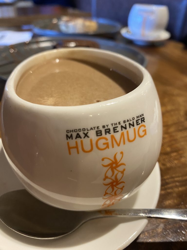 I have a sweet tooth and love chocolate (especially dark chocolate to be precise) and whilst I was upstairs I noticed to my delight that there was a Max Brenner‘s. So after Anna’s nail salon appointment, we headed upstairs to Max Brenner’s and had a thick Italian Hot chocolate and a cookie each.